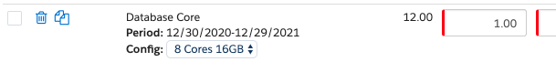 | Example: You sell a Database as a Service where the cores, nodes and memory vary, but have different predefined attributes. This view shows the configurations attached to the "Database Core" product: ![]() This view shows an example Configuration with Attributes for the 8 Core 16GB Configuration. ![]() The product would then be viewed the following way in the quote line editor. All available configurations are available in the "Config" drop down. ![]() |