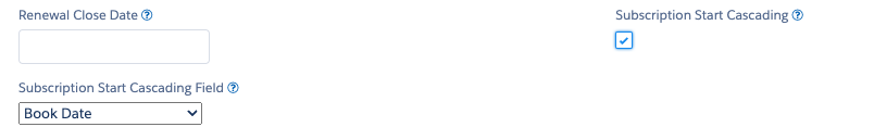 Browse to the "TYSO Setup" tab. Find the "Automation" subtab. Mark the "Subscription Start Cascading" checkbox as "True" and then select your Opportunity date field in the "Subscription Start Cascading Field" . Don't forget to Save your settings.